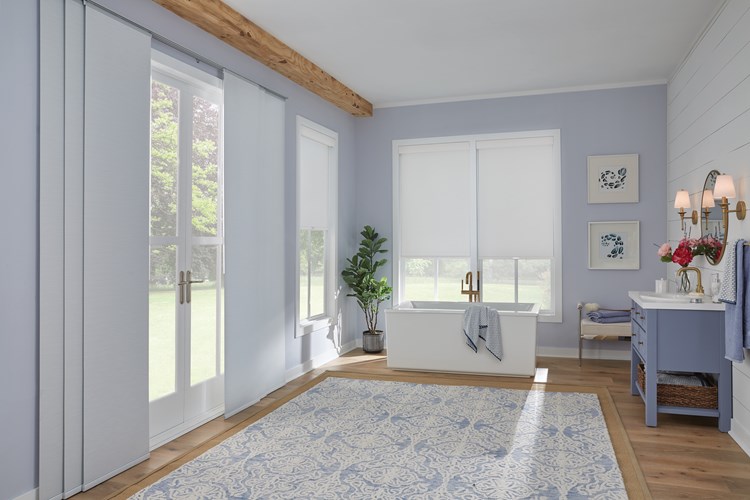 Bali Sliding Panels offer a sleek alternative to vertical blinds or drapery as a wide window solution, a stylish room divider or even a closet door! Choose from solar, roller, Classic Roman, or Natural Shade options.